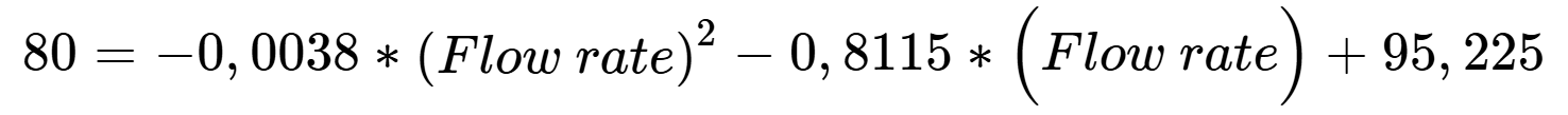 To determine the flow rate required to achieve an exiting liquid temperature of 80 °C at a heater setting of 100 °C, use Formula 2: